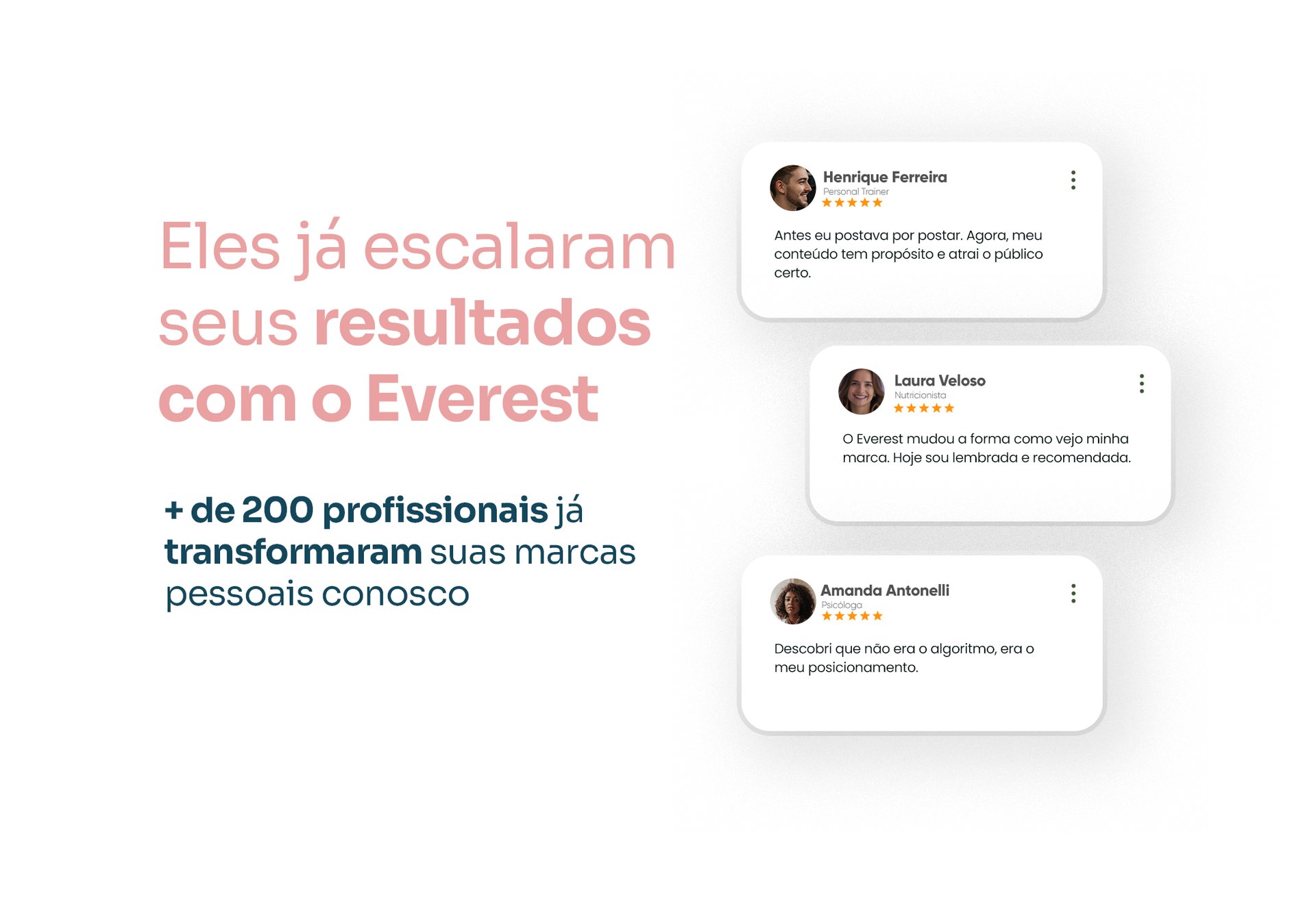Com o Everest, você ganha clareza, estrutura e uma presença digital de autoridade mesmo começando do zero.
